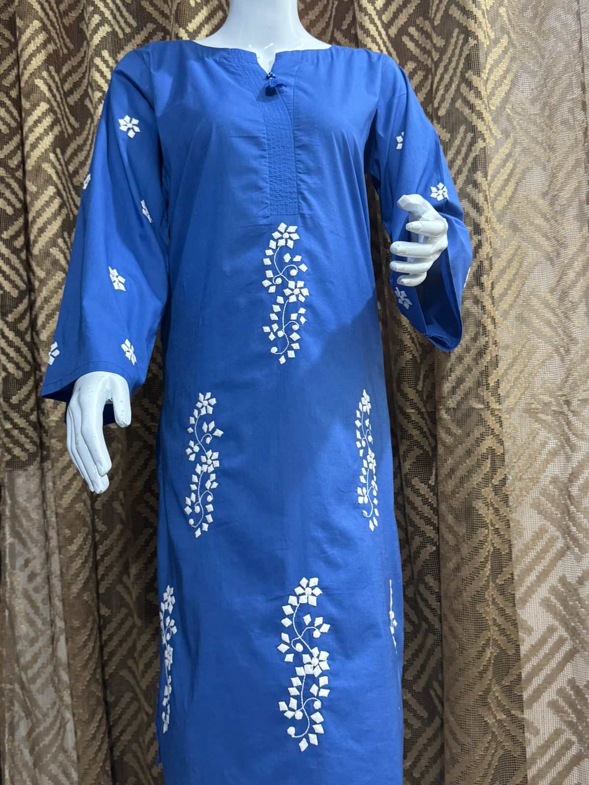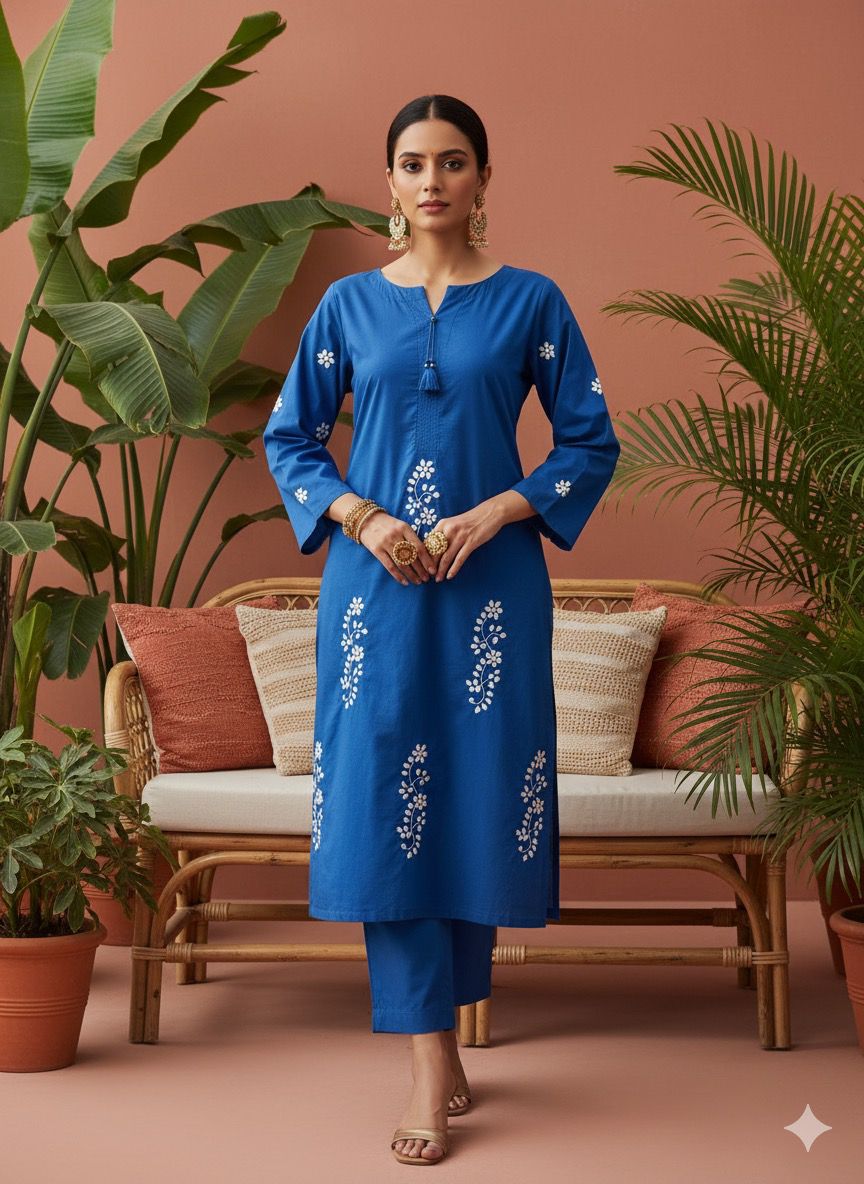 Deep Royal Blue (kurta and straight pants with modern Applique work) Stitched